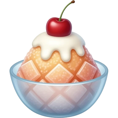 aesthetic bingsu emoji, shaved ice dessert with whipped cream and cherry on top, minimal clean design, soft lighting, centered composition emoji
