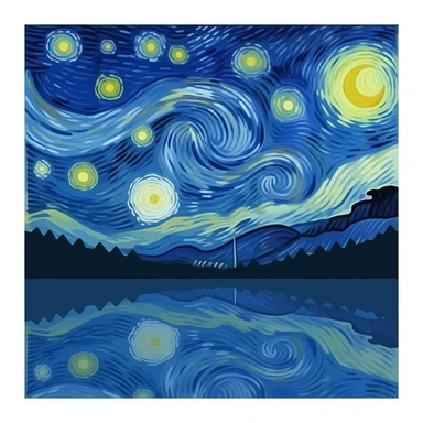 aesthetic starry night emoji, painterly style, swirling sky, glowing stars, reflections on water, minimal but artistic design emoji