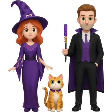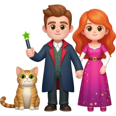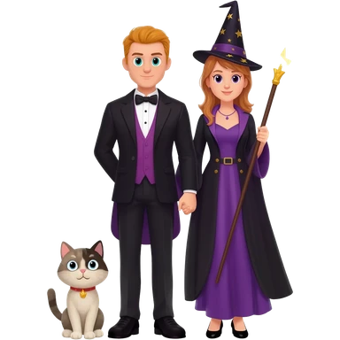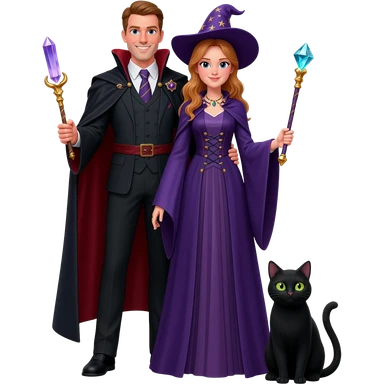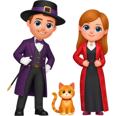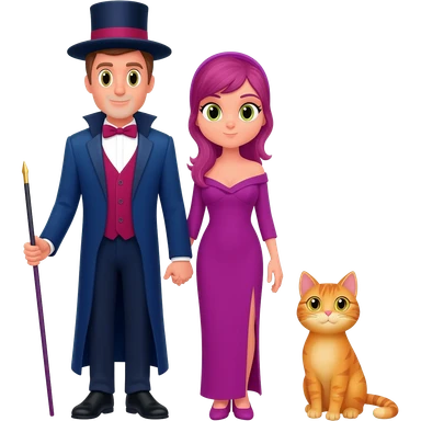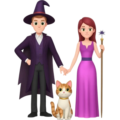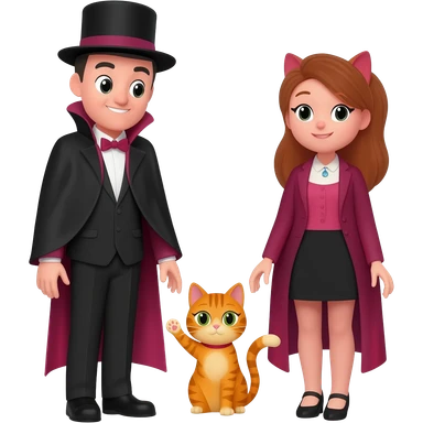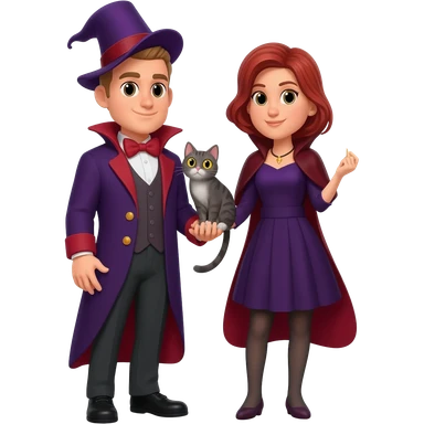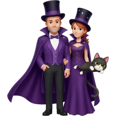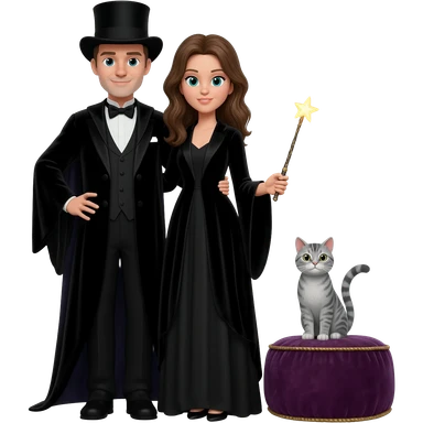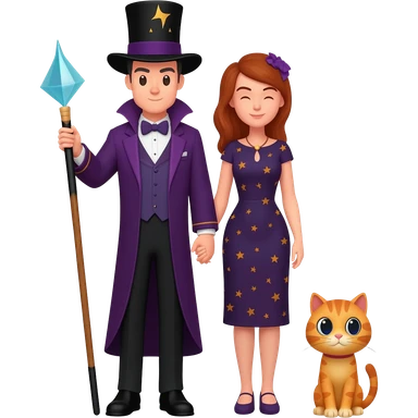 magician couple and their pet cat emoji