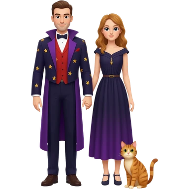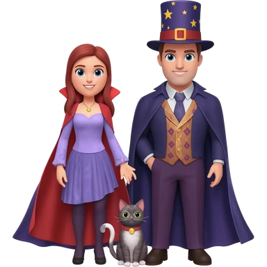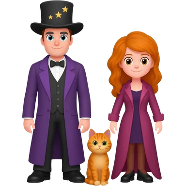 Icon Contour Magician Couple and Their Pet Cat emoji