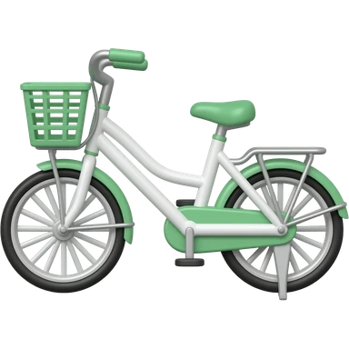 korean city bike emoji, white bicycle with green details, front basket, minimal clean design, soft pastel tones, centered, aesthetic style emoji