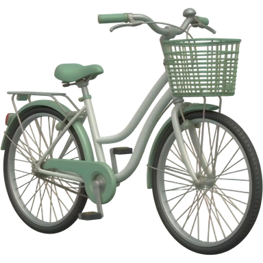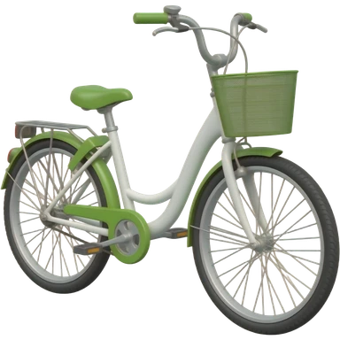 aesthetic bicycle emoji, minimal design, clean white bike with green accents, front basket, centered composition, soft lighting emoji