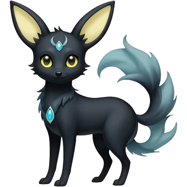 Shadowy Matte-Black Mysterious Wispy-Aura Fog-Veiled Elegant Umbreon-Fionbri-fusion-creature (full body) emoji