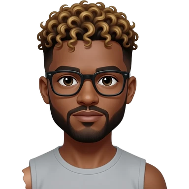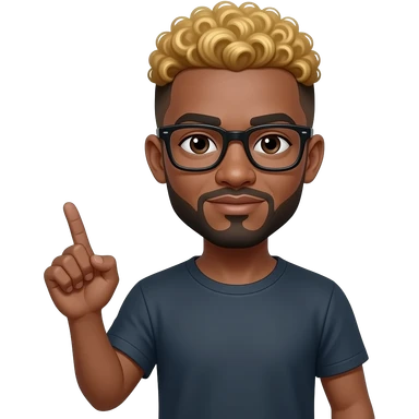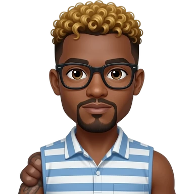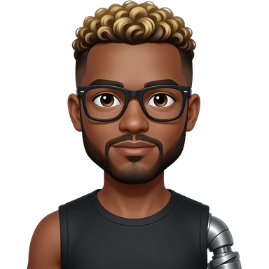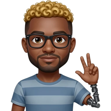 African American man with a thin black disconnect goatee with a mid top curly fade with gold dyed curly top hairstyle with a Symbrachydactyly right arm and a missing left arm wearing black glasses emoji