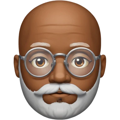 African american male, bald, full gray beard, black mustache. Round face, glasses emoji