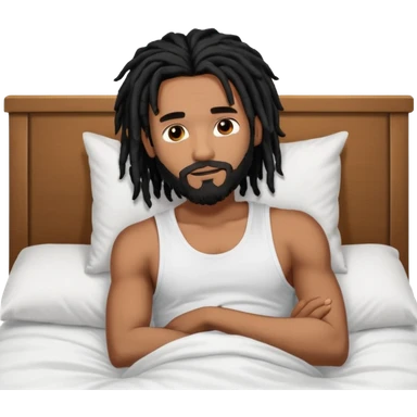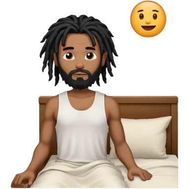 African American man with shoulder length black dreadlocks with black beard wearing a men's white tank top shirt waking up in the bed emoji