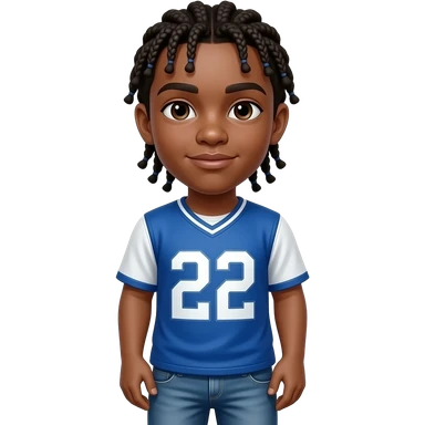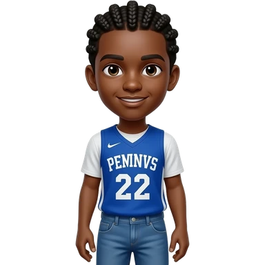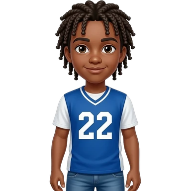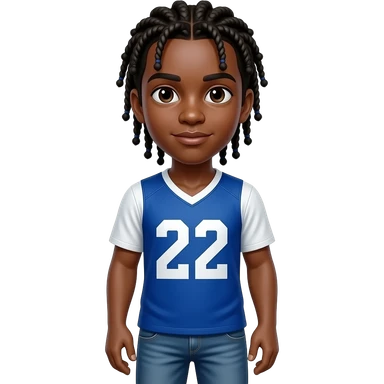 African American teenage boy with cornrows wearing a blue and white jersey shirt with 22 on it emoji | AI Emoji Generator