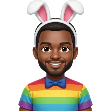 african Man in colourful tshirt with bunny ears and bowties bust size emoji