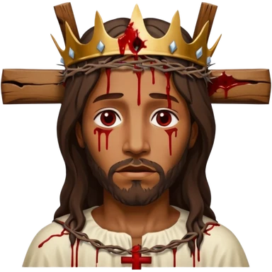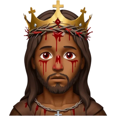 African American Jesus Christ bleeding on wooden cross with crown of thorns on his head emoji