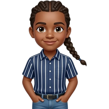 African American teenage boy wit cornrow braids wearing a navy blue button up shirt with white vertical stripes wearing denim jeans emoji