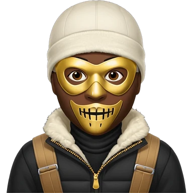 smug muscular african male black baraklava ski mask wearing guy with no top. emoji