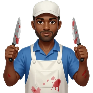 African Slaughter house worker with knives and meat hook emoji | AI Emoji Generator