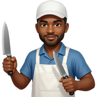 African Slaughter house worker with knives and knife sharpner emoji