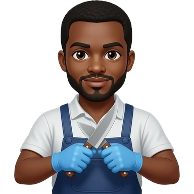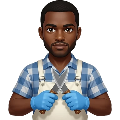 African Slaughter house worker with knives and blue gloves emoji