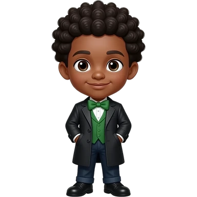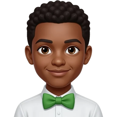afro boy wear black coat and green bow tie half body close up emoji | AI Emoji Generator