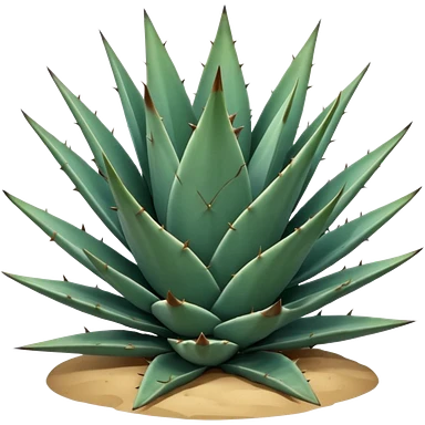 Cinematic Realistic Agave Emoji, Bold and spiky, with long, pointed leaves forming a rosette pattern. The sharp edges and soft blue-green hue exude a sense of rugged beauty and desert resilience. Soft glowing outline, capturing the essence of survival and strength in a striking agave plant! emoji