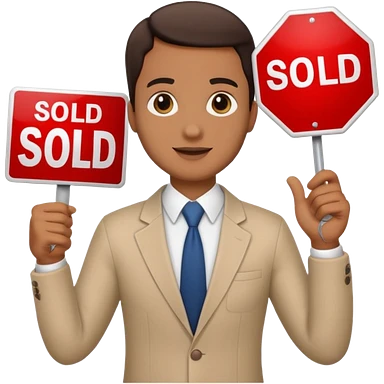 Un agent immobilier devant un panneau vendu emoji
