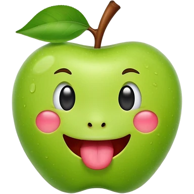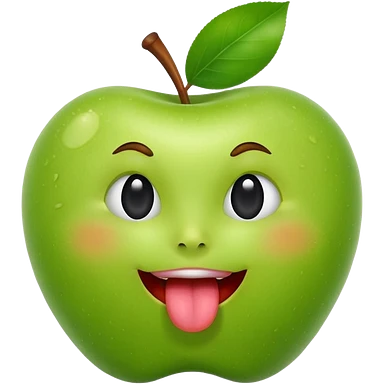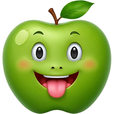 create a green apple showing the tongue on IOS style same pattern as the real iphone emojis, should look cute emoji
