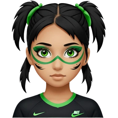 cute teenage girl, cute athletic Nike clothes, tan skin, green eyes, black hair, face paint, very long eylashes emoji
