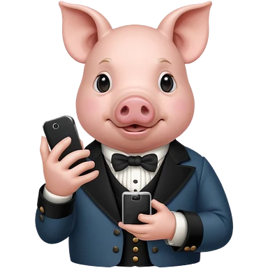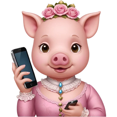 girl pig in victorian pink finery scrolling on an ornate cell phone emoji
