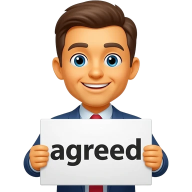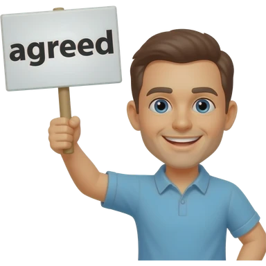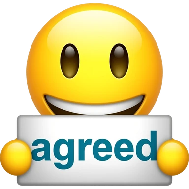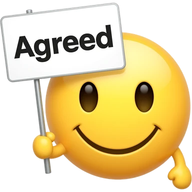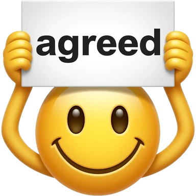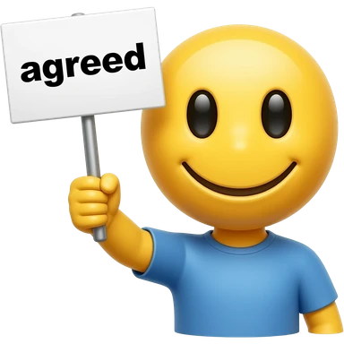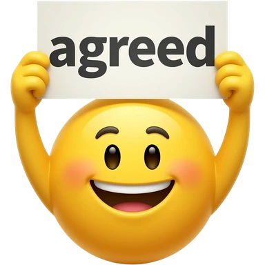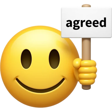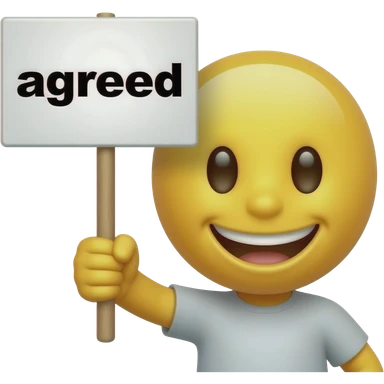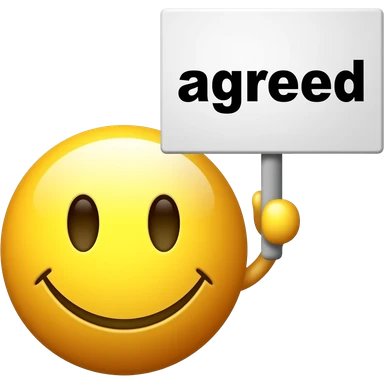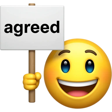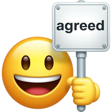 Yellow smiley face holding up a sign that says "agreed" emoji
