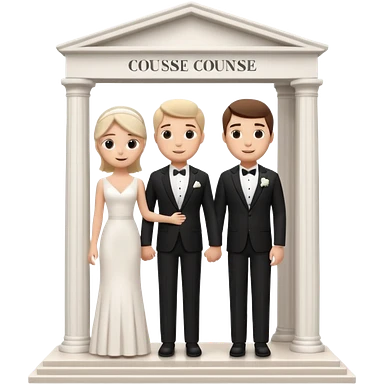 A 3D cartoon courthouse wedding venue with a bride and groom standing at the entrance, elegant white columns, soft natural lighting, simple modern decor, minimal background, realistic Memoji-style rendering. emoji