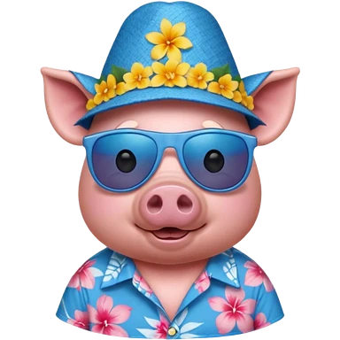Pig with aloha shirt, birthday hat, sunglasses emoji