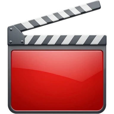 Bright red glossy movie clapper with a folded upper striped bar and light glare emoji