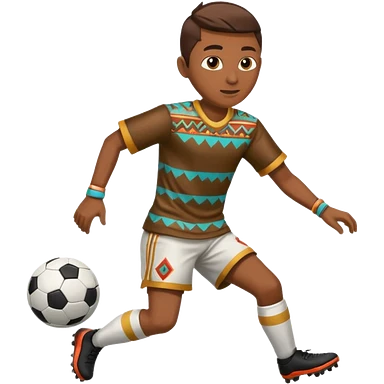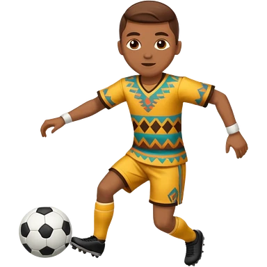 Águila real de nacionalidad mexicana con vestimenta de la cultura azteca que juegue fútbol emoji