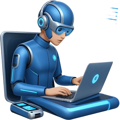 AI Agent looking at the laptop and scan a flow of content on the screen emoji | AI Emoji Generator