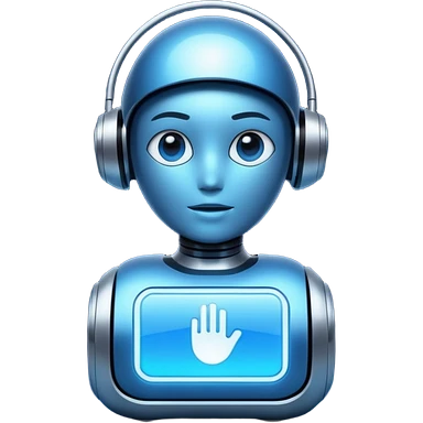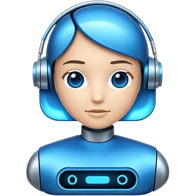 ultimate AI assistant like Jarvis, glowing blue face, digital features, futuristic emoji