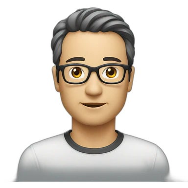 Sure, here’s a prompt for generating the described image using AI: "A 50-year-old bald man with a graying beard. He is smiling and has his index finger resting on his lower lip as if he is deep in thought." emoji