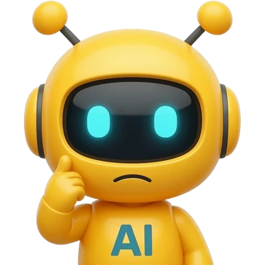 cute yellow emoji, AI chatbot mascot, thinking expression, simple cartoon style, transparent background emoji