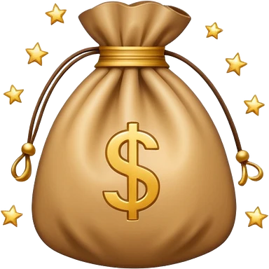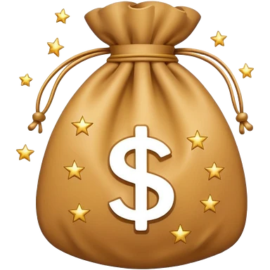 Minimal line-art icon of a money bag with sparkles around it, clean modern style, simple outlines, slight 3D, no background, transparent, represents clean and ethical income. emoji
