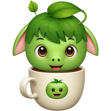 Cut the Rope's Om Nom cute from in barista's suite with a cup of cofee emoji