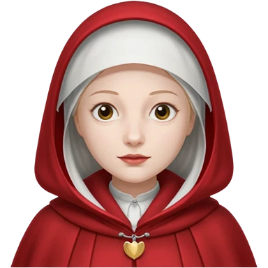 mujer de perfil con un vestido rojo de manga y falsas largas y voluptosas, y una toca blanca que cubre su cara emoji