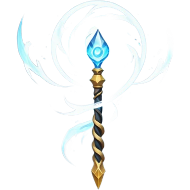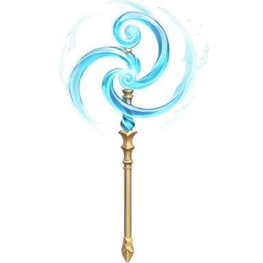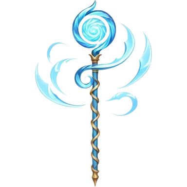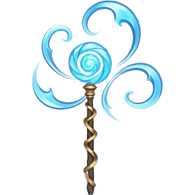 wind elemental staff object icon, fantasy magic staff, swirling wind aura, light blue glow, floating air particles, elegant design, 3D cartoon, mobile game icon style, centered, clean background, soft shadow, no text, no watermark emoji