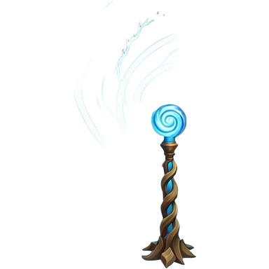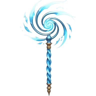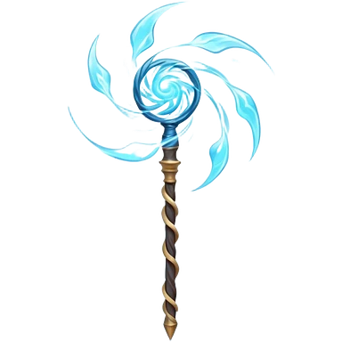storm wind elemental staff object icon, powerful magic staff, vortex wind swirl, glowing runes, strong air trail effects, epic fantasy design, 3D cartoon, mobile game icon style, centered, clean background, no text, no watermark emoji