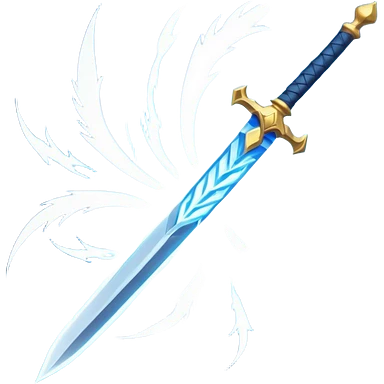 wind elemental sword object icon, elegant fantasy sword, swirling wind aura around the blade, light blue glow, floating air particles, 3D cartoon, mobile game icon style, centered, clean background, soft shadow, no text, no watermark emoji
