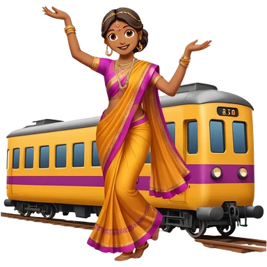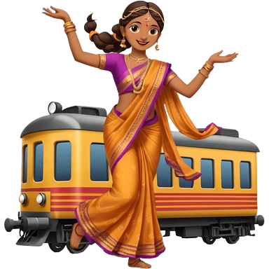 An Indian woman dancer dancing on top of a running train. emoji