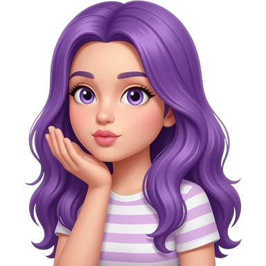 girl with long purple hair makes a air kiss emoji