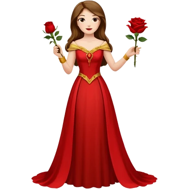 woman opera singer singing with long brown hair and golden dress, entire body, withou microfone, with a rose in right hand emoji
