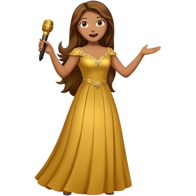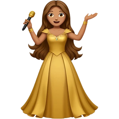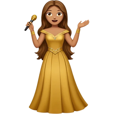 woman opera singer singing with long brown hair and golden dress and entire body emoji