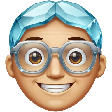 A single crystal gemstone character wearing glasses, chunky and irregular with faceted very sharp sides, smile, , high detail, soft lighting, centered on a plain dark background emoji