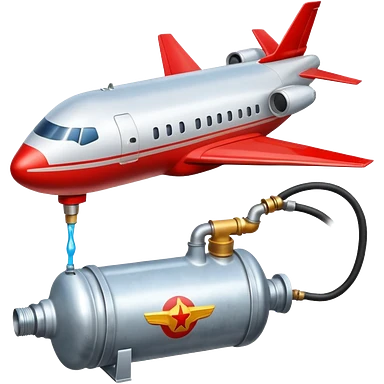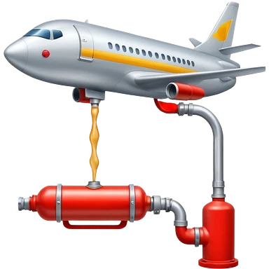 Airplane wing fuel tank being filled with jet fuel from hydrant emoji