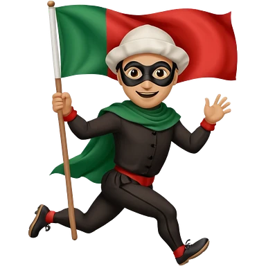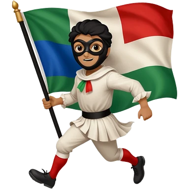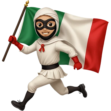 pulcinella con la maschera nera con bandiera italiana che corre emoji