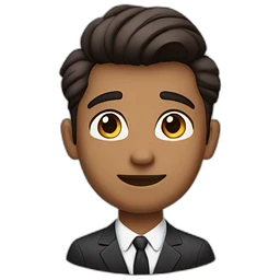 Quiff, 5'o clock shadow beard, short man, dark brown skintone, wearing airpods pro 2, formal wear, round face, medium sized nose, brown eyes emoji