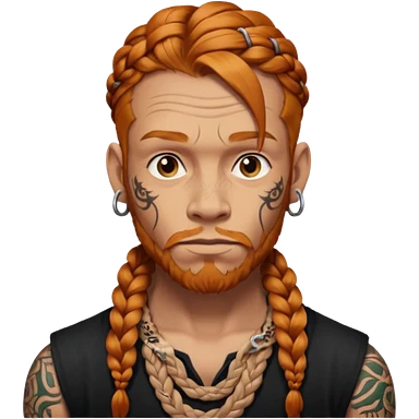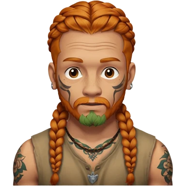 very old, white bearded and white mustached, ginger thick haired, braided, earringed emoji