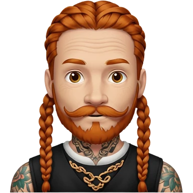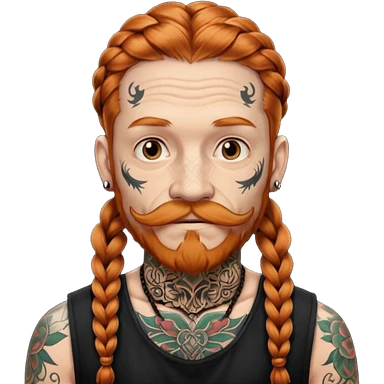 thick very dark ginger braids man old very tattoed with the whitest mustache ever emoji