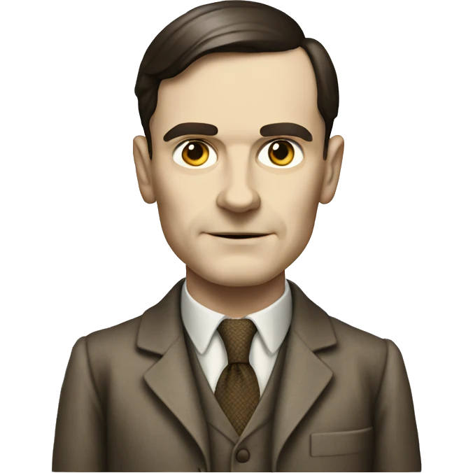 Alan Turing listening to an audiobook using iphone and an airpods emoji